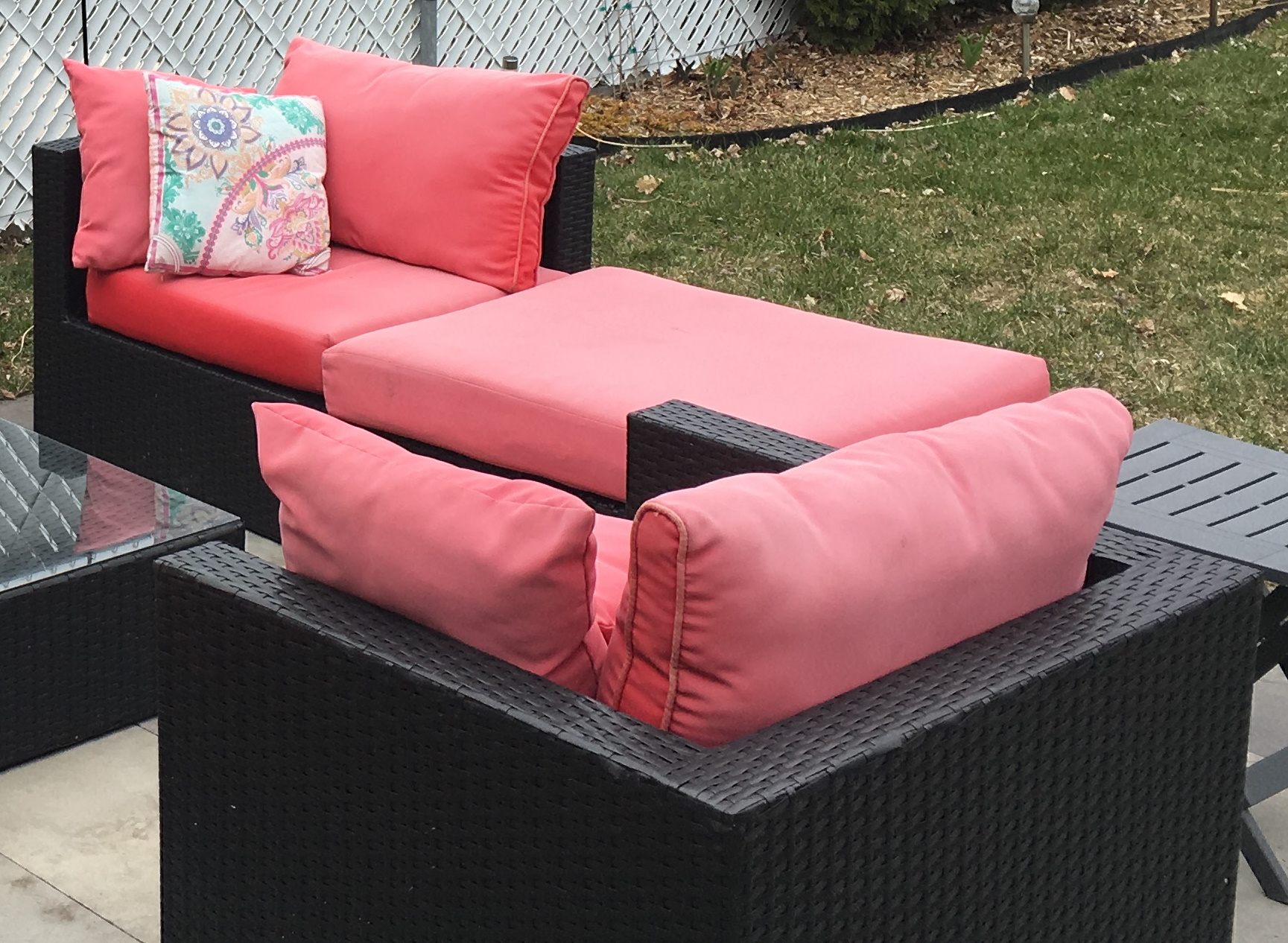 Remplacement des housses de coussins du mobilier de la terrasse afin de lui rendre son éclat des premiers jours !